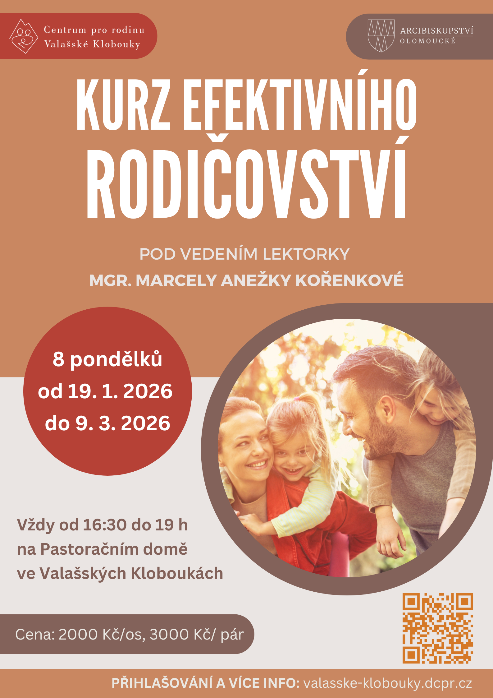 - Centrum pro rodinu zve na Kurz efektivního rodičovství do Val. Klobouk. Začátek 19. ledna. Přihlášky do konce prosince. Viz plakátek ZDE.